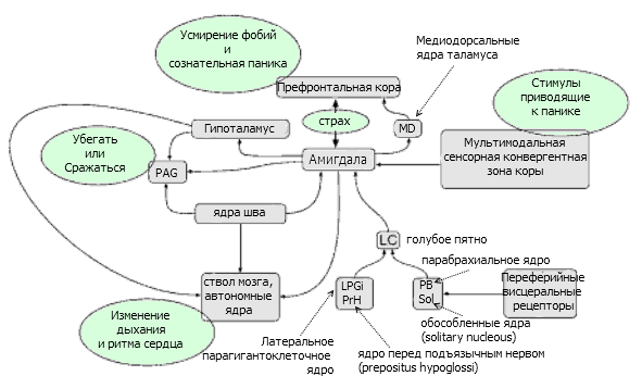 Нейроанатомические структуры связанные с паническим расстройством, их связи и функции.